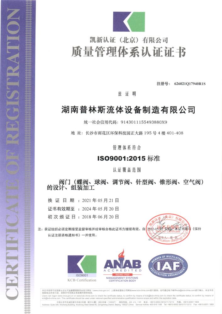 質(zhì)量管理體系認證證書